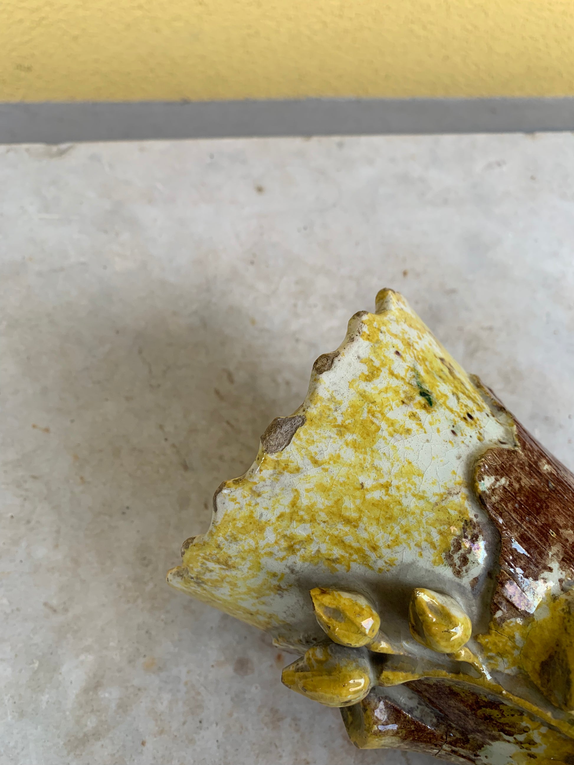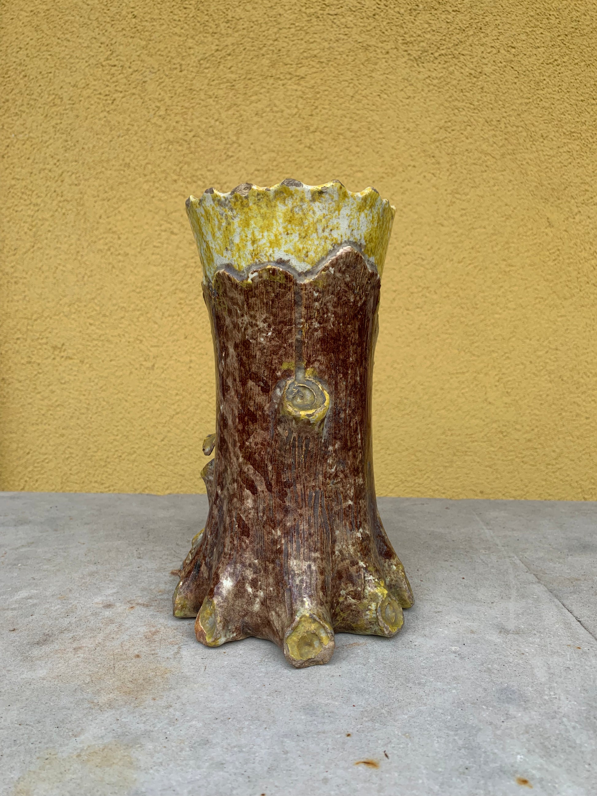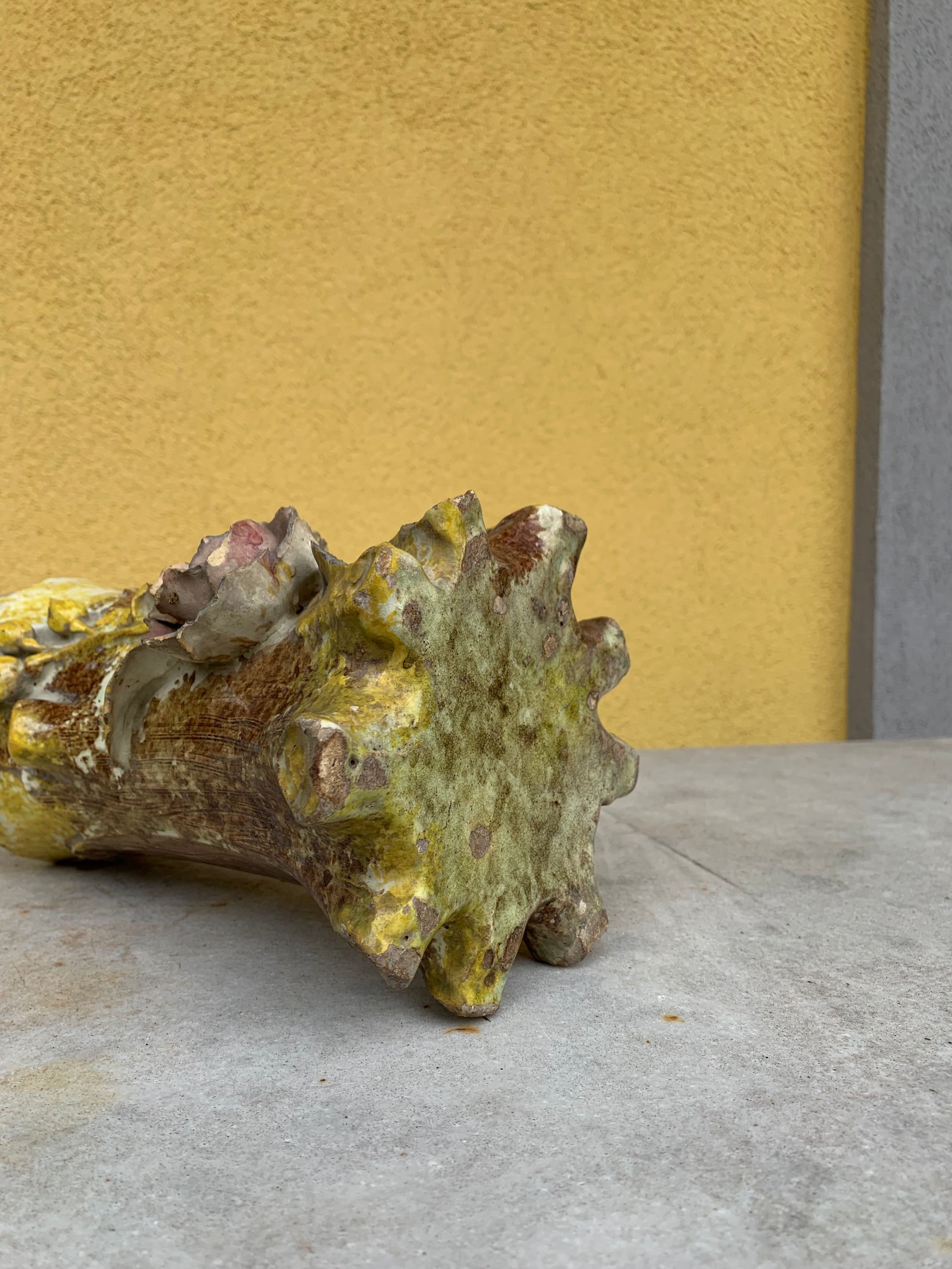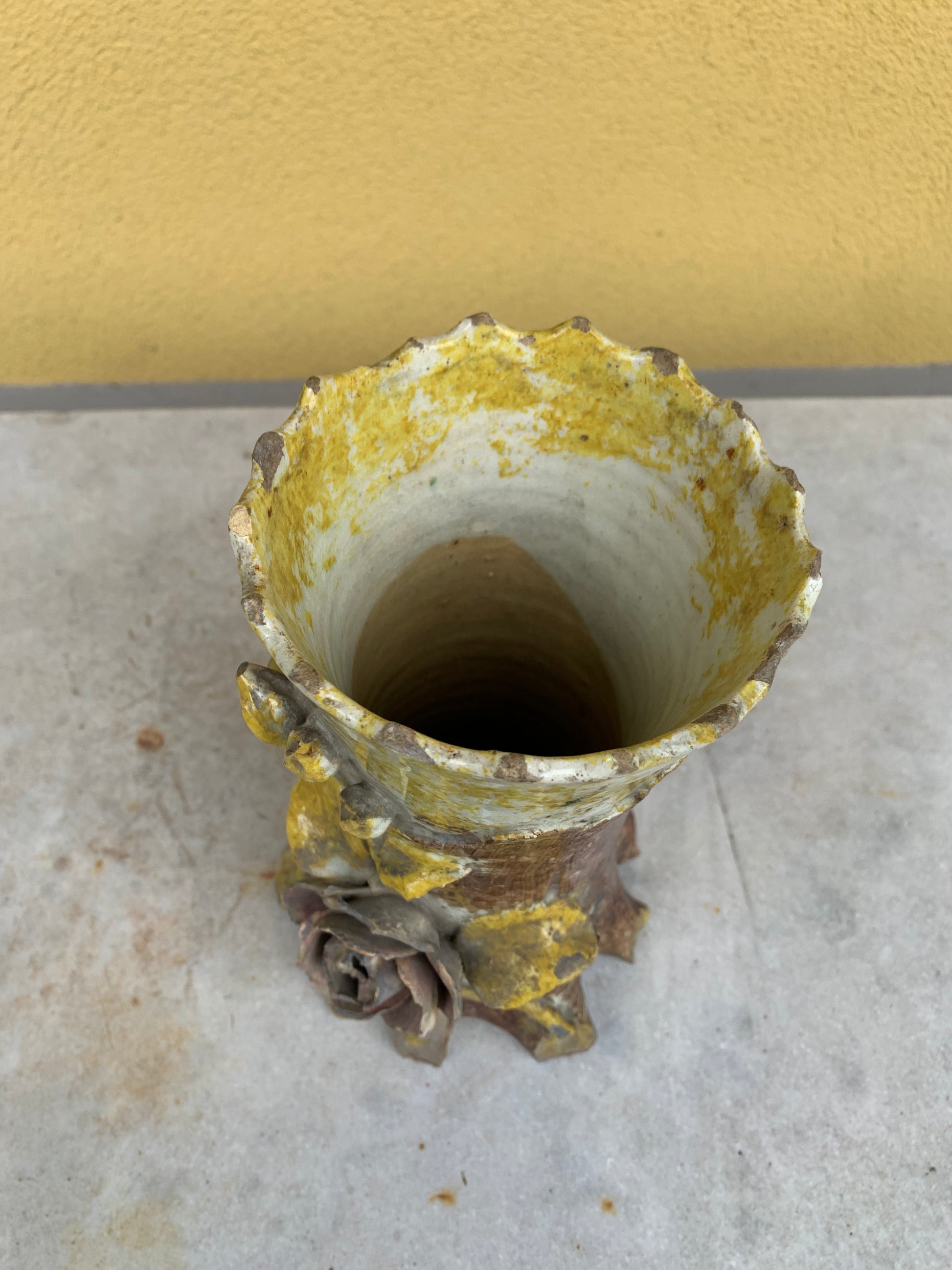This vase is made of terracotta and was made in the second half of the 20th century. It has warm, earthy colours, which are typical of this type of pottery. Its design is very beautiful and has elegant flower patterns that look great with different floral arrangements.